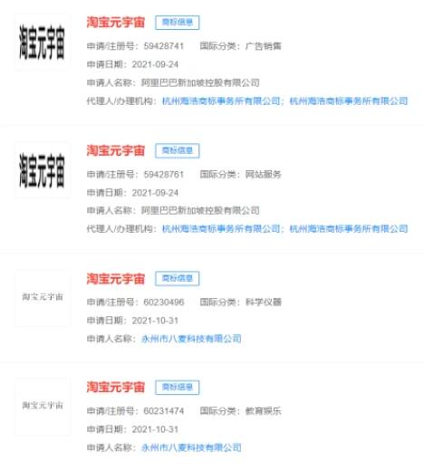 此外,多家科技公司和商貿(mào)公司已申請注冊“淘寶元宇宙”“元宇宙淘寶”商標(biāo),國際分類涉及廣告銷售、科學(xué)儀器等,目前相關(guān)商標(biāo)狀態(tài)多為駁回復(fù)審。